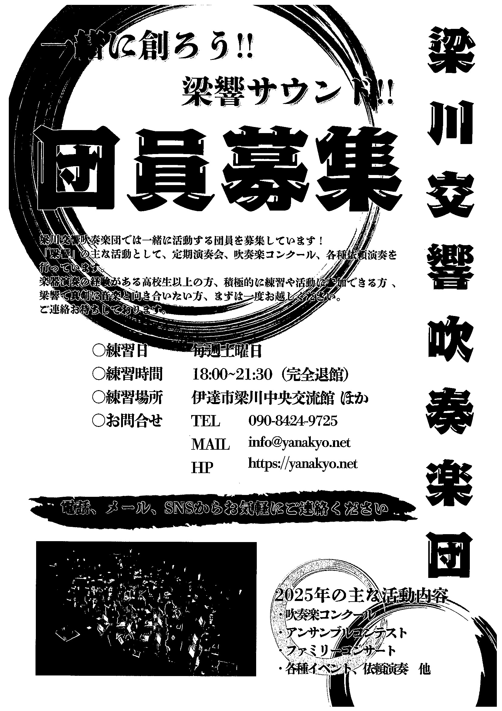 - 主催:梁川交響吹奏楽団/Facebook/X/Instagram(外部リンク)