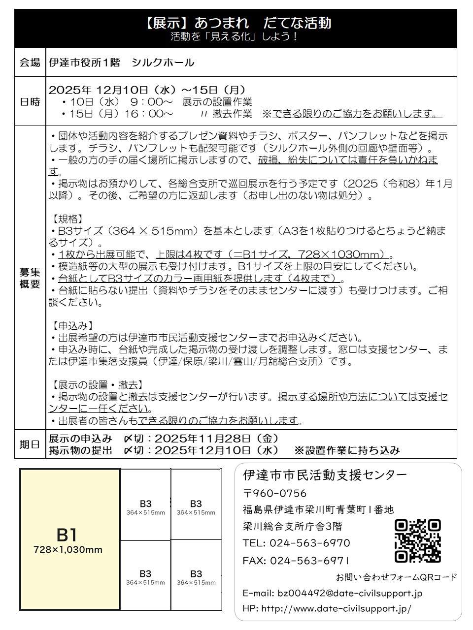 【展示募集】2025.12「あつまれ!だてな活動」