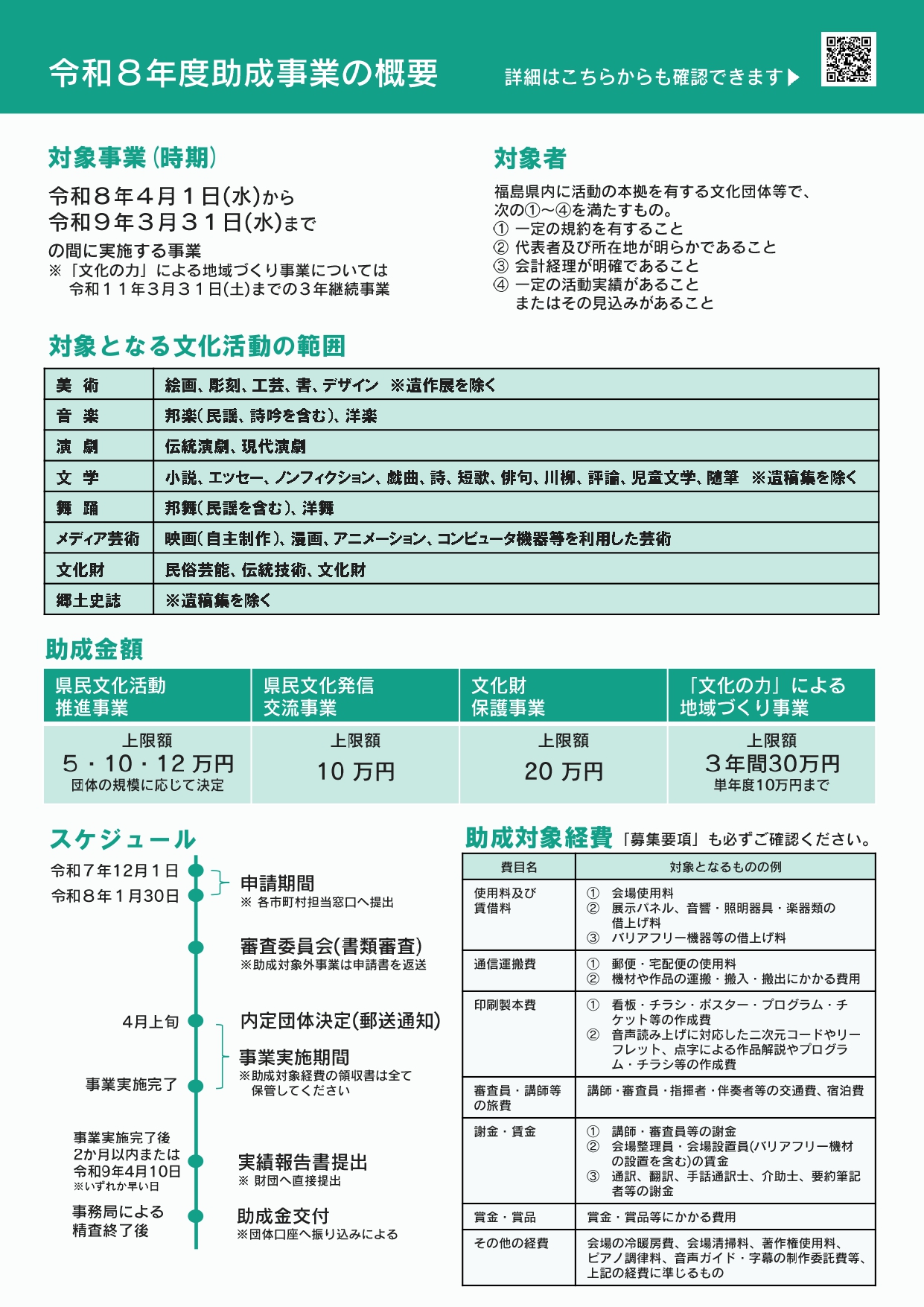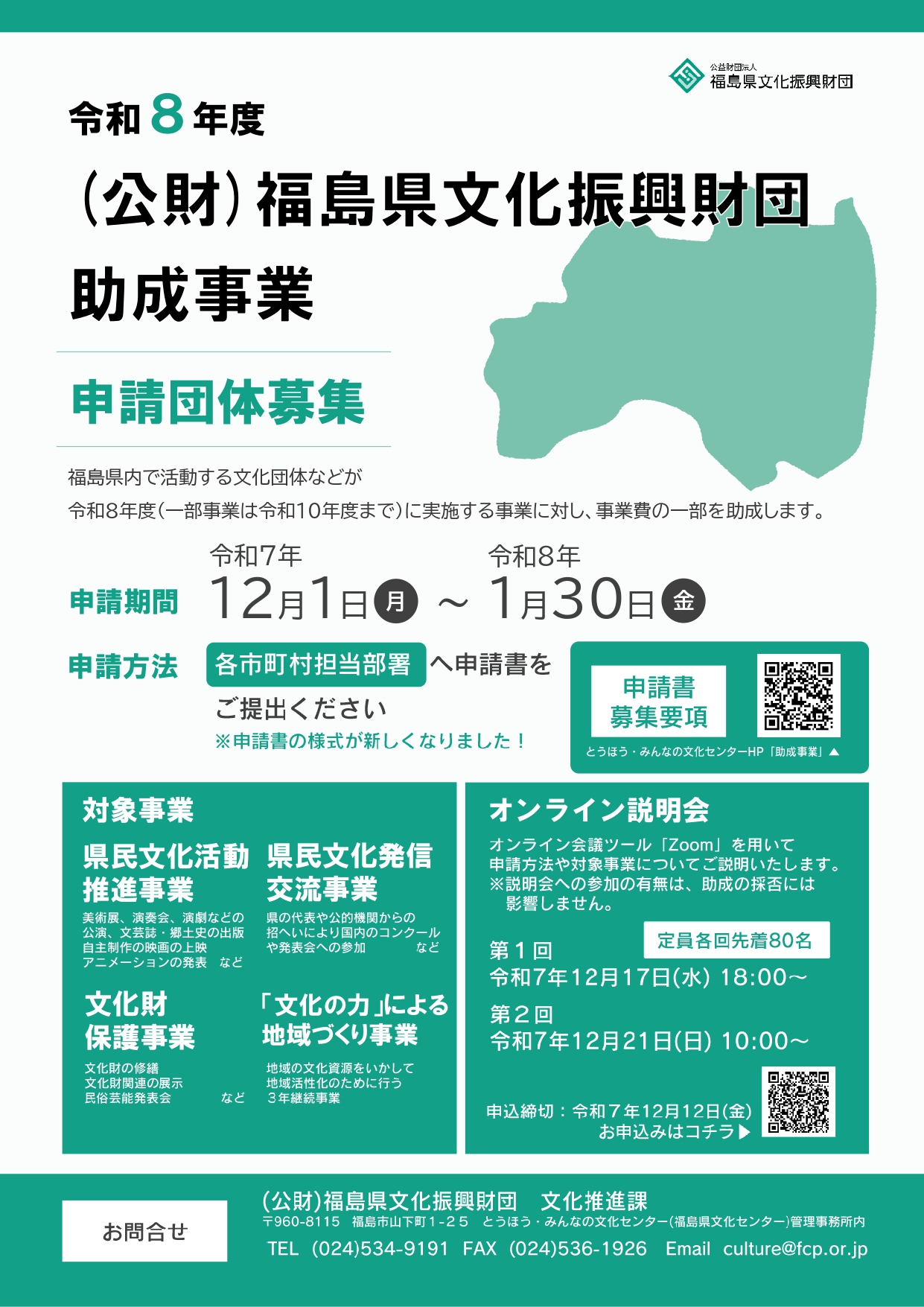 - 名称:令和8年度 公益財団法人福島県文化振興財団 助成事業(外部リンク)