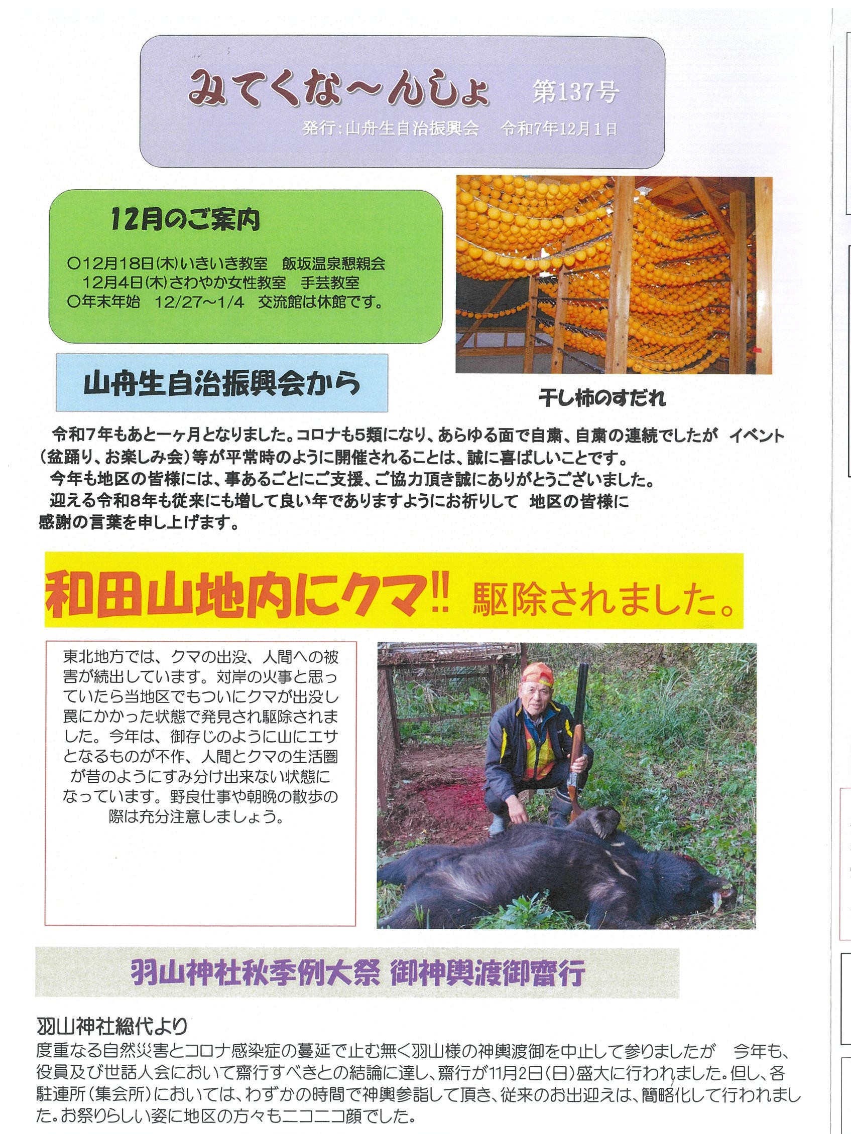 - 山舟生自治振興会発行『みてくな~んしょ』(第137号)和田山地内にクマ!!(写真有)