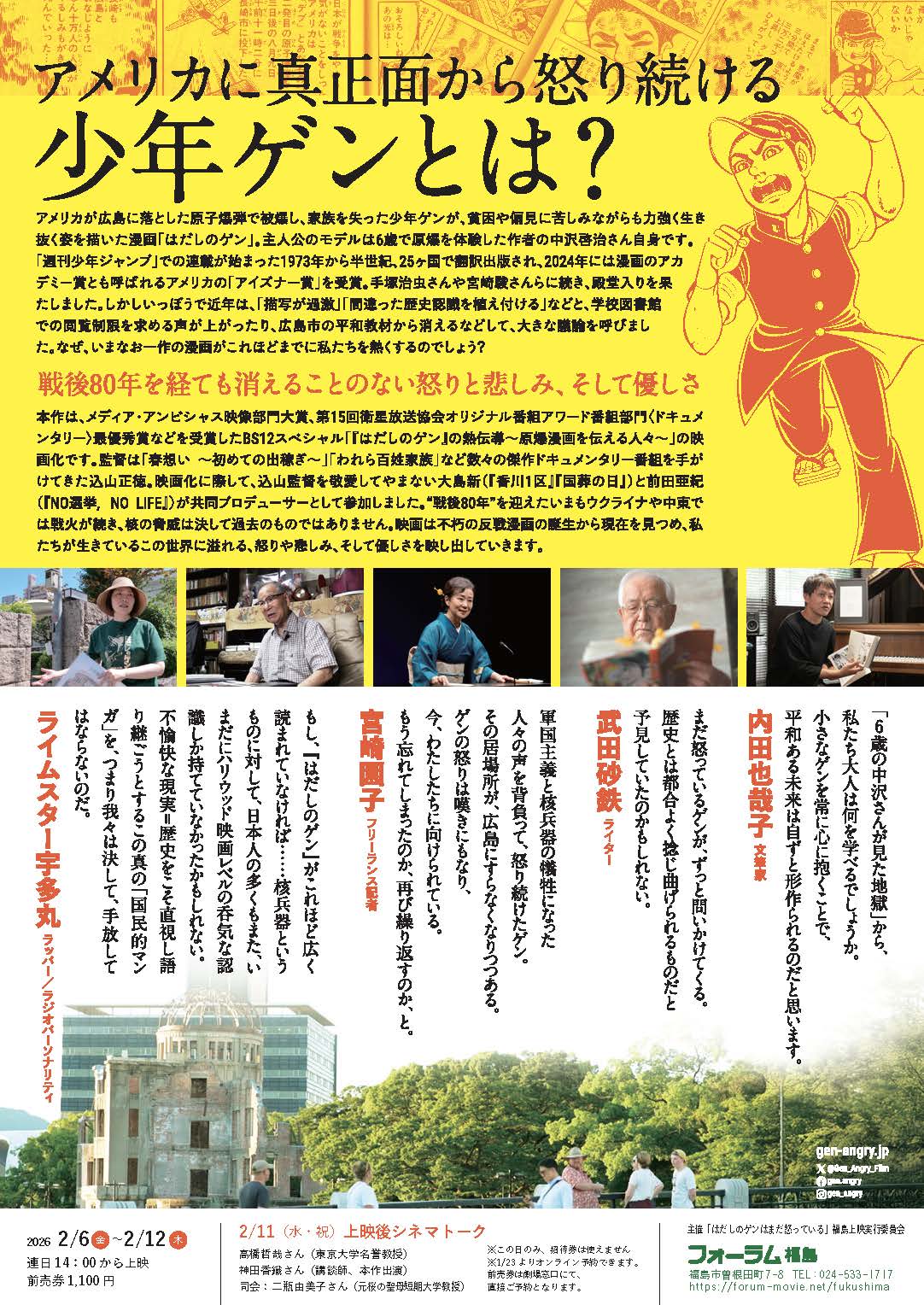 - 主催:「はだしのゲンはまだ怒っている」福島上映実行委員会