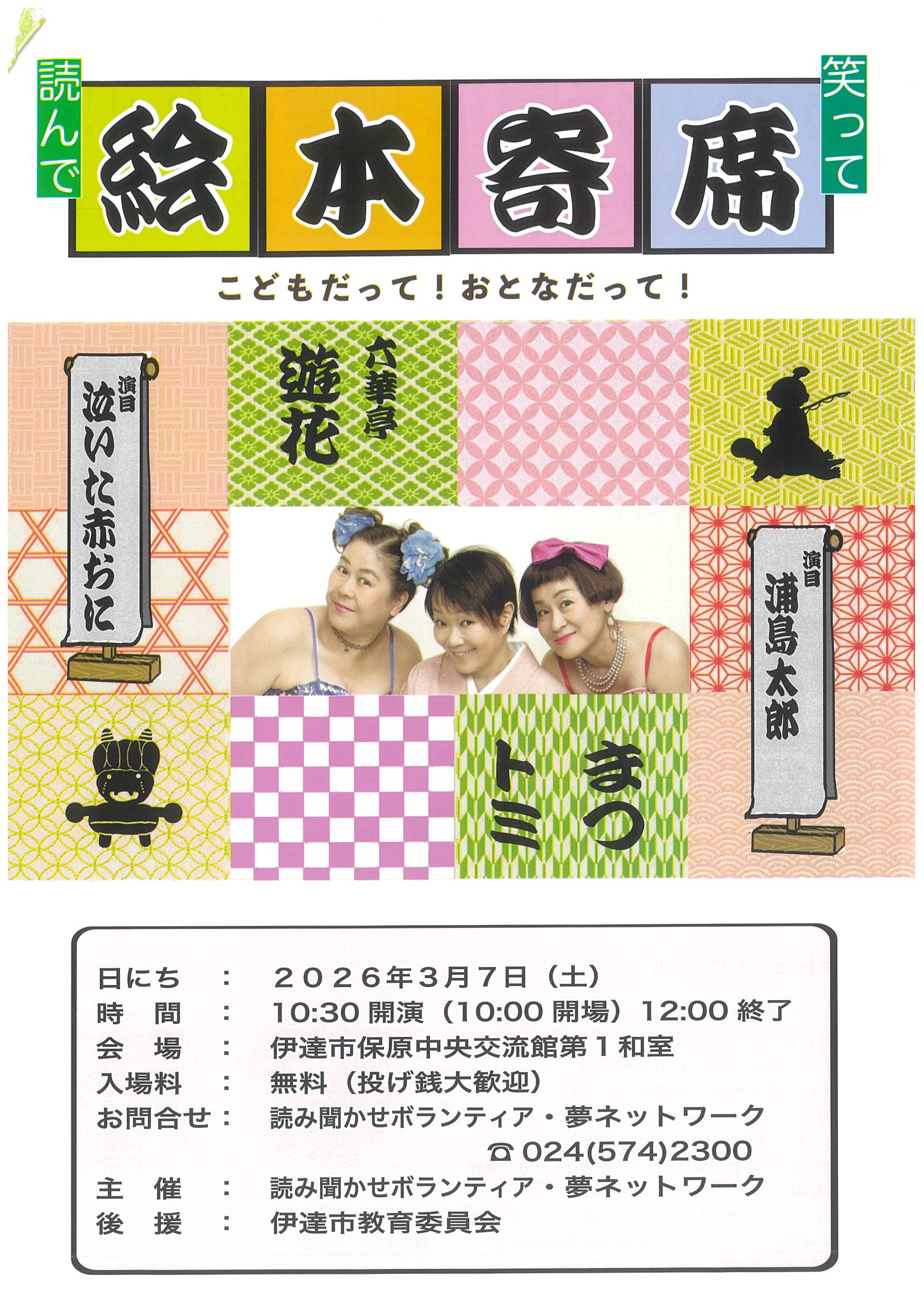 - 主催:読み聞かせボランティア・夢ネットワーク(旧NPO法人夢ネットワーク) 024-574-2300