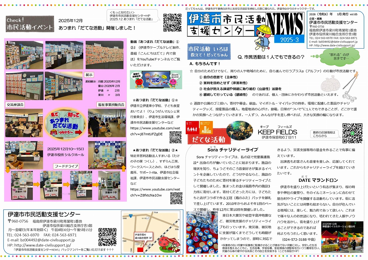 伊達市市民活動支援センターNEWS 2025-3 (Vol.65)