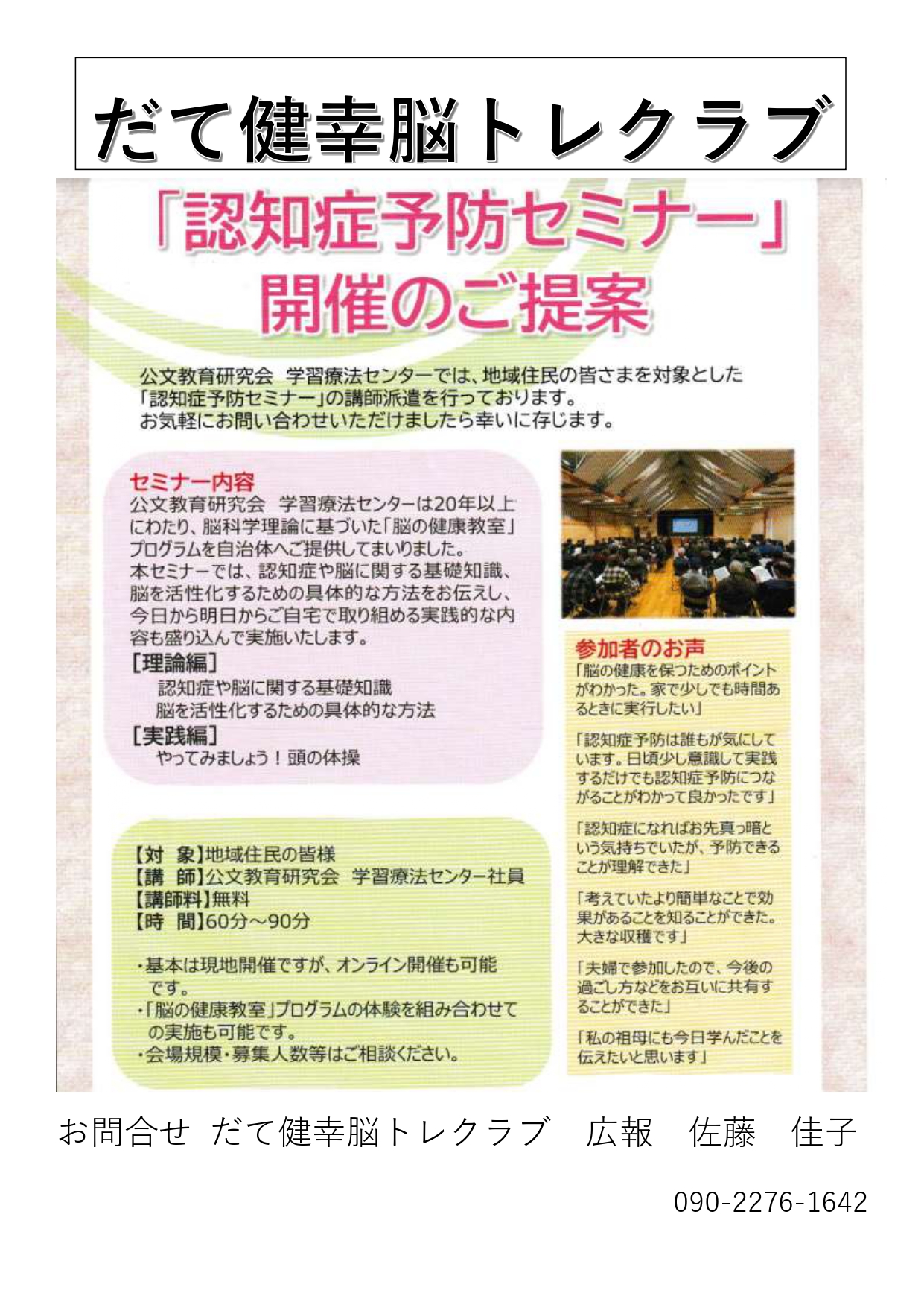 日常で出来る認知症予防セミナーを開催することで、周知をはかっていきます。